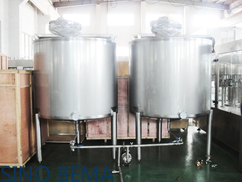 1. Mixing tanks. Normally, we will need to mix some other kinds of flavors, sugar and other items into the water before cooling down. These tanks will be the ingredient mixing stage. Different factory has different kinds of recipe.